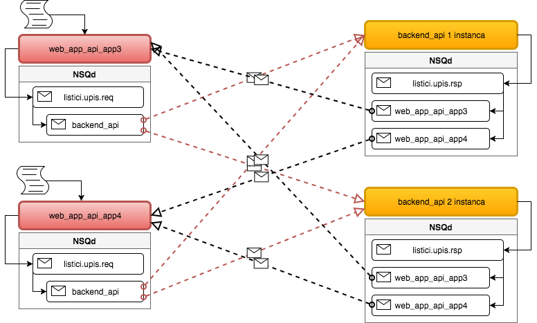 klijenti pronalaze nsqd-ove s topic-ima i channel-ima pomoću nsqlookupd-a